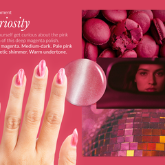 Let yourself get curious about the pink sheen of this deep magenta polish.